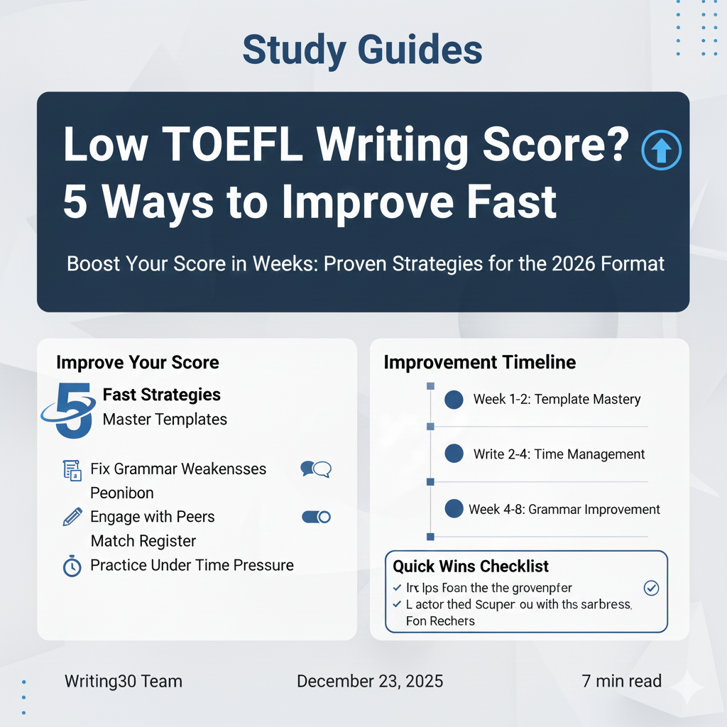 Frustrated with your TOEFL writing score? You're not alone. The 2026 format is different, and many students struggle to adapt. Here are 5 proven strategies that can boost your score within weeks—not months. (See the visual summary infographic at the end for a quick reference.)